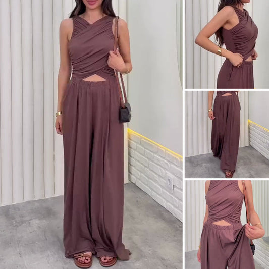 Women's Wrap Crop Top & Wide-Leg Pants Set