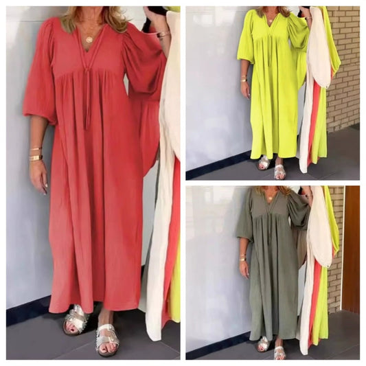 Bubble & 3/4 Sleeve V-Neck Maxi Dress
