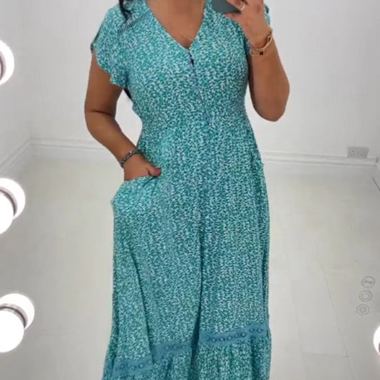 👗Casual Breathable 3/4 Sleeves V-Neck Dress
