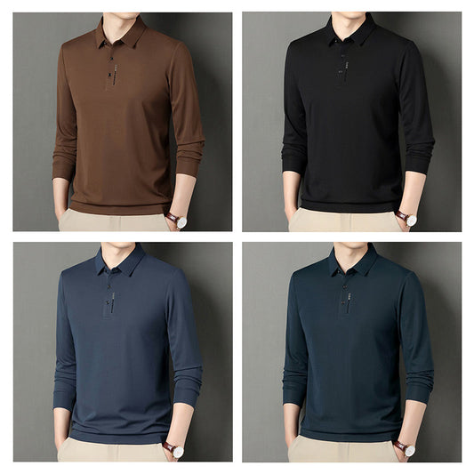 Men's Solid Long Sleeve T-Shirt with Lapel
