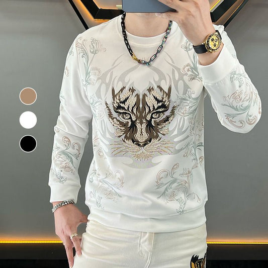 Men’s Casual Print Glitter Tiger Sweatshirt