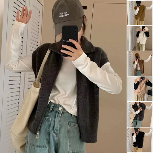 Women's Lapel Collar Zipper Sweater Vest