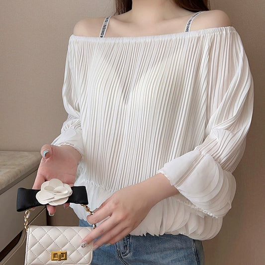 Women's Flowy Pleated Off-The-Shoulder Top