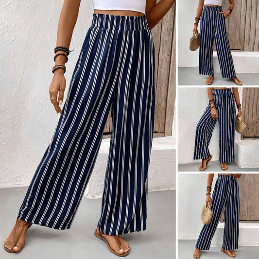Women’s Casual Solid Elastic Wide-Leg Pants
