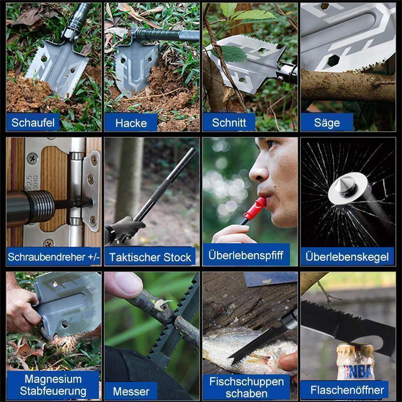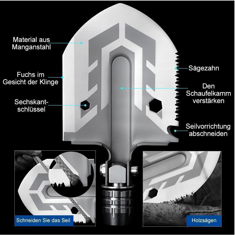As enthusiastic campers, we know how hard it can be to find good tools that last. We were always looking for ones that don't take up too much space in your backpack and are lightweight and easy to carry. This led us to create an entirely new tool, which we combined into a robust, lightweight, and durable shovel.
