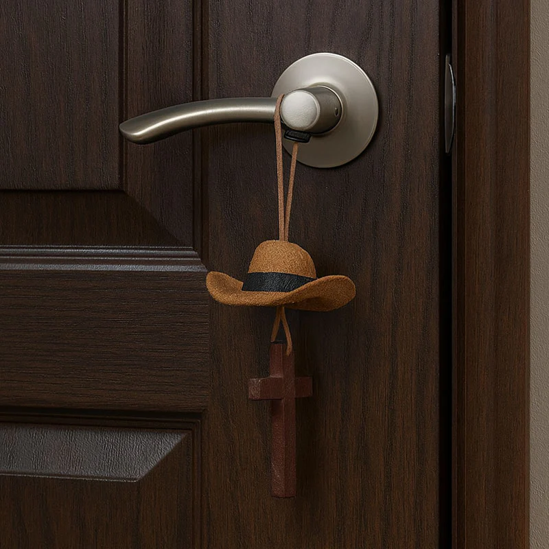 🤠 49% OFF NOW! ✨ Cowboy Hat & Cross Car Charm – Religious Car Decor, Durable Metal & Easy Clip-On 🚗⛪