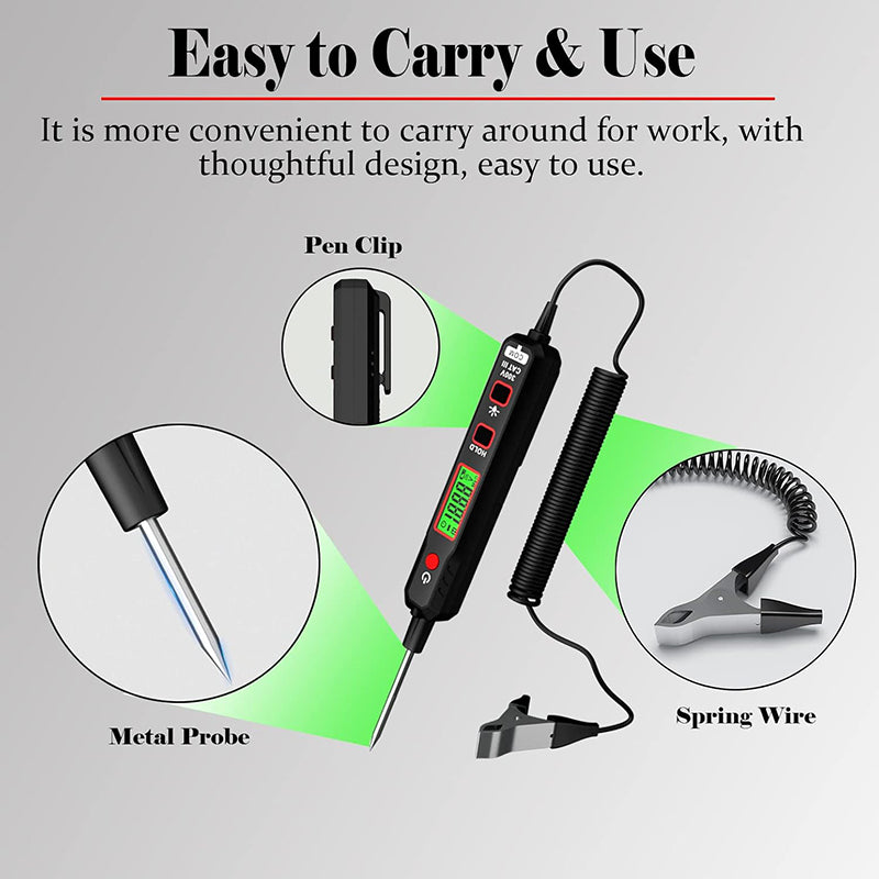 MULTI-FUNCTION DETECTION: This tester supports DC voltage detection, resistance tests, and on-off testing. It's ideal for diagnosing issues with circuits, fuses, switches, and wiring in vehicles, covering common problems like non-functioning lights and accessories.