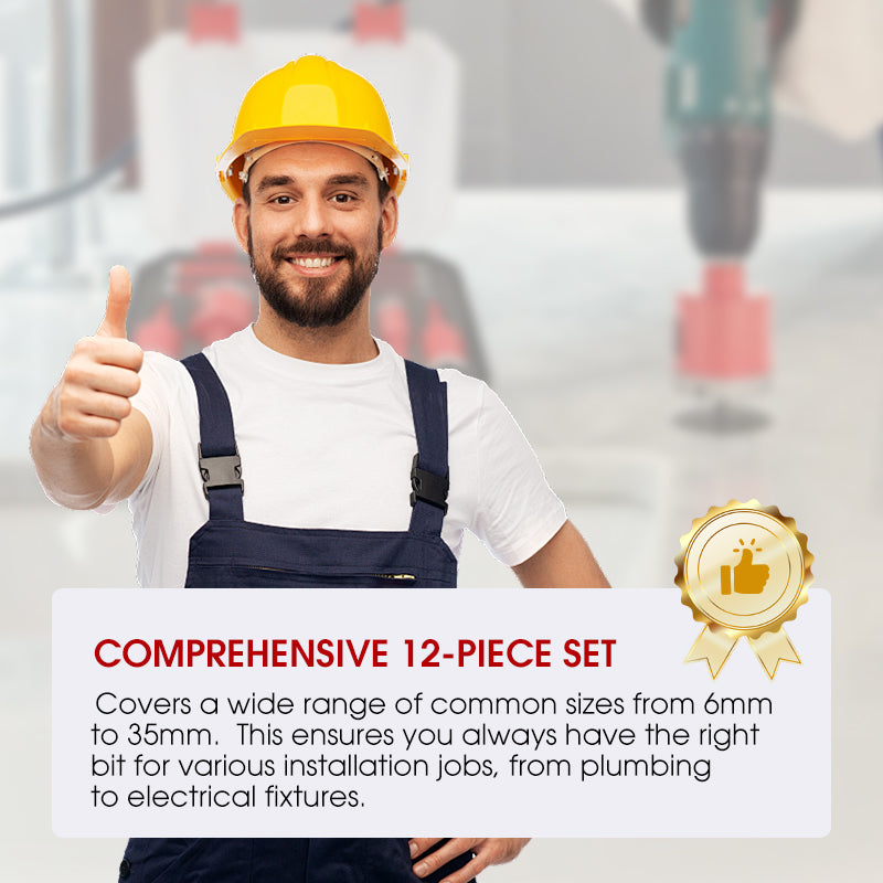 COMPREHENSIVE 12-PIECE SET - Covers a wide range of common sizes from 6mm to 35mm. This ensures you always have the right bit for various installation jobs, from plumbing to electrical fixtures.