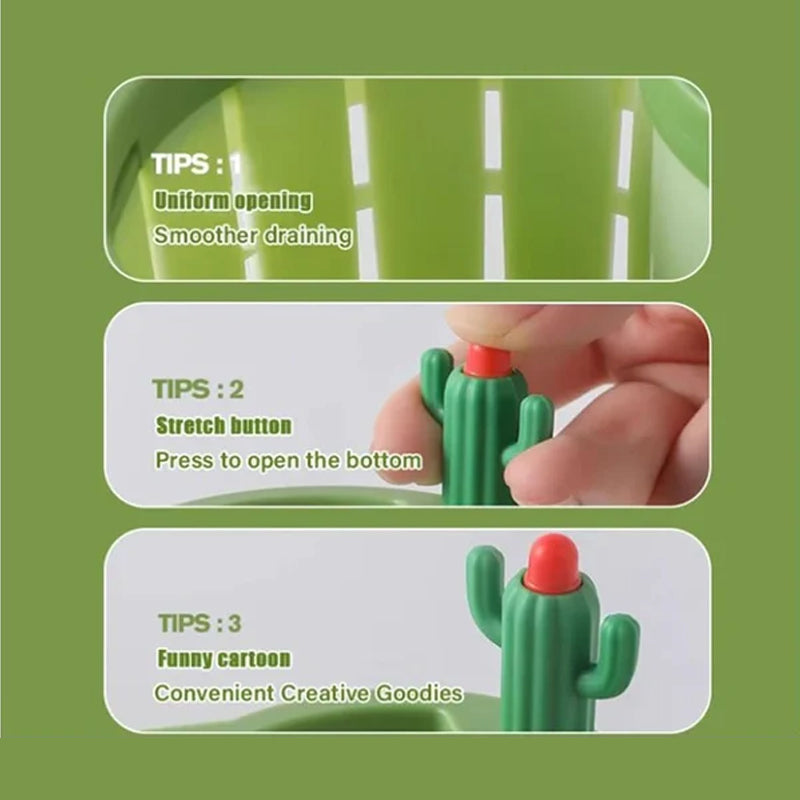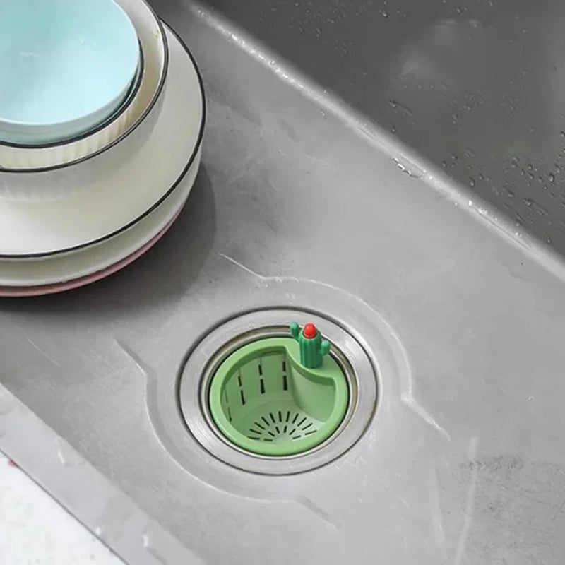 Effortlessly keep your sink clear with the Cute Cactus Kitchen Sink Drain Strainer – just press to dispose of debris in style!