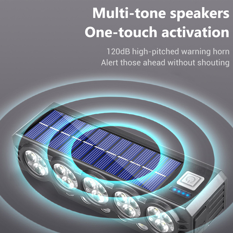 DUAL CHARGING SYSTEM - Combines solar panel charging with a fast Type-C port, ensuring your light stays powered on long rides, providing reliable illumination and peace of mind without worrying about battery life.