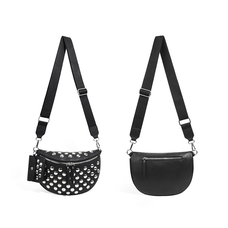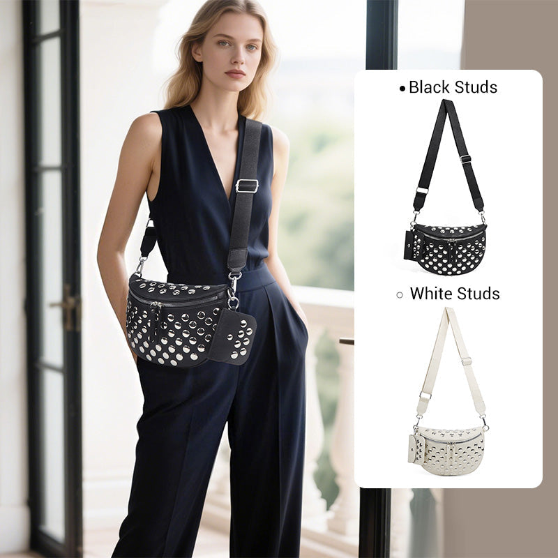 FADE-RESISTANT HARDWARE FOR LONG-LASTING ELEGANCE – Metal zippers, clasps, and studs maintain their polished look over time, resisting tarnishing even with frequent use. The double zipper closure ensures security while adding a sleek finish.