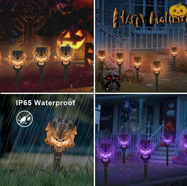 🔥Halloween Hot Sale💀Spooky Skulls Solar Torch Flame Lights👿
