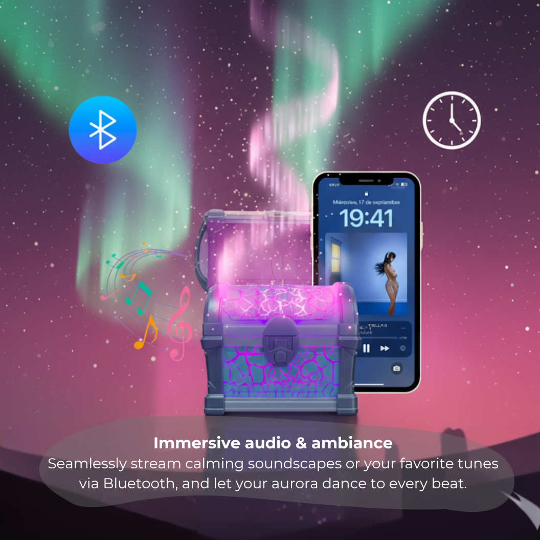 A convenient remote control is included, allowing you to easily switch between aurora colors, adjust motion speed, and select soothing white noise sounds.