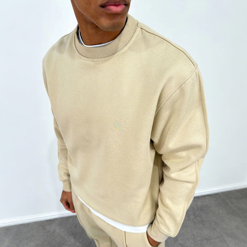 Men’s Solid Color Top & High Waist Jogger Pants 2-Piece Set
