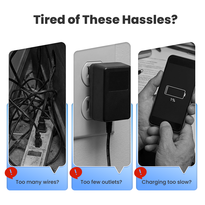 ALL-IN-ONE POWER HUBĀ - Consolidate your power needs with multiple AC outlets and USB ports. This allows you to charge laptops, phones, and other gadgets simultaneously, effectively decluttering your workspace and eliminating adapter chaos.