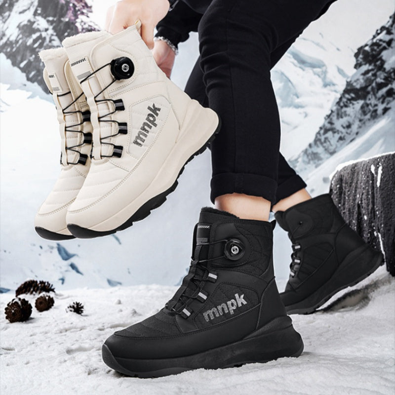 CONVENIENT ROTATING BUCKLE DESIGN: Featuring a portable rotating shoe buckle, these snow boots are easy to use. Simply pull to loosen, rotate to tighten, and press to lock in place, making it effortless to secure your fit.