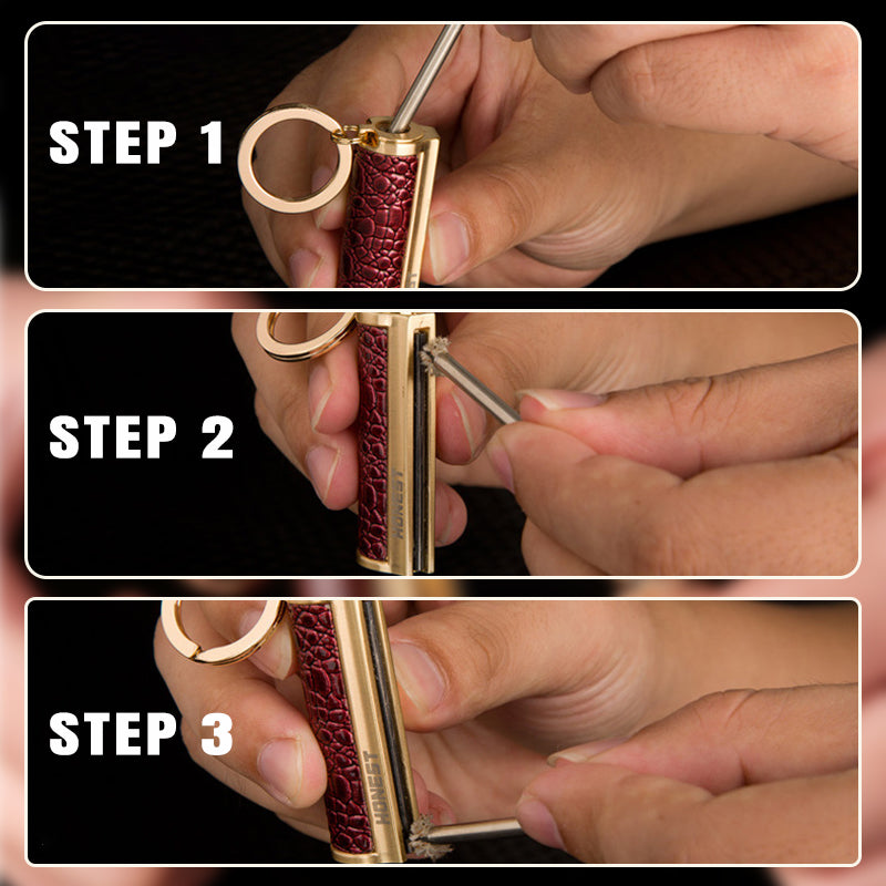 - Strike the flint rod on the side of the product to create a flame.