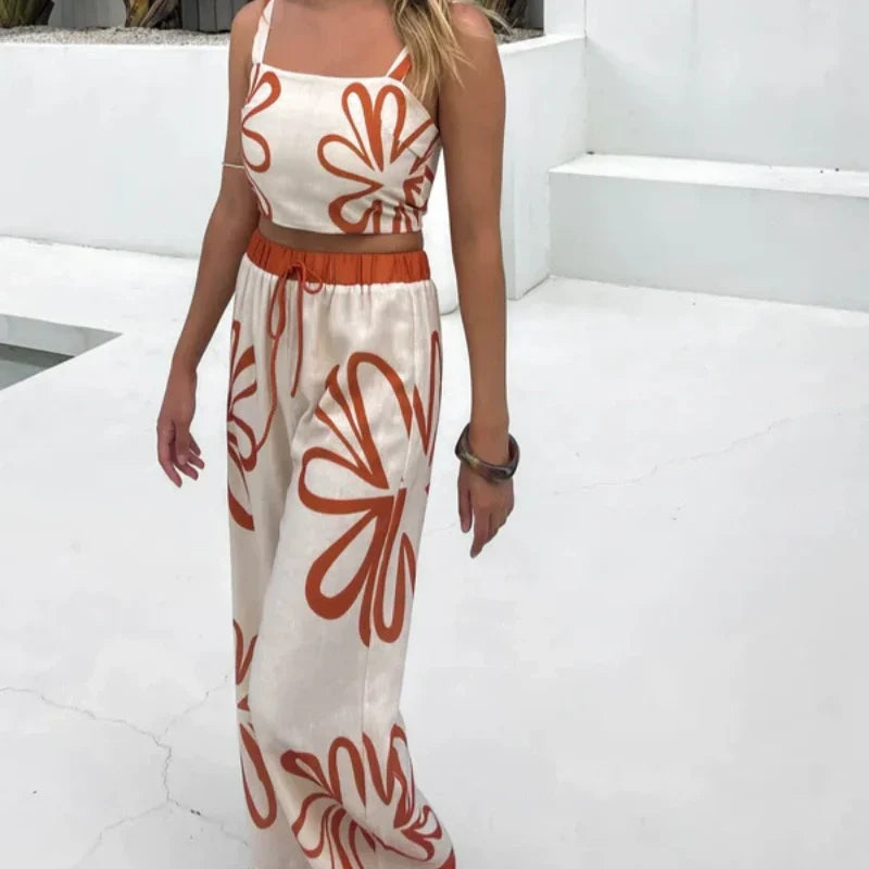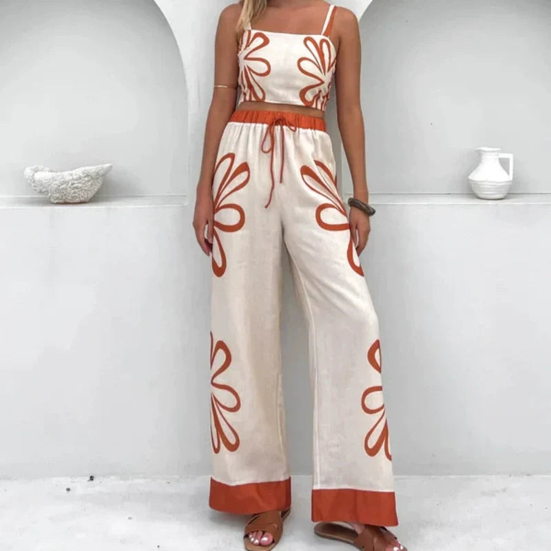 Printed Sleeveless Top & Wide-Leg Pants Set