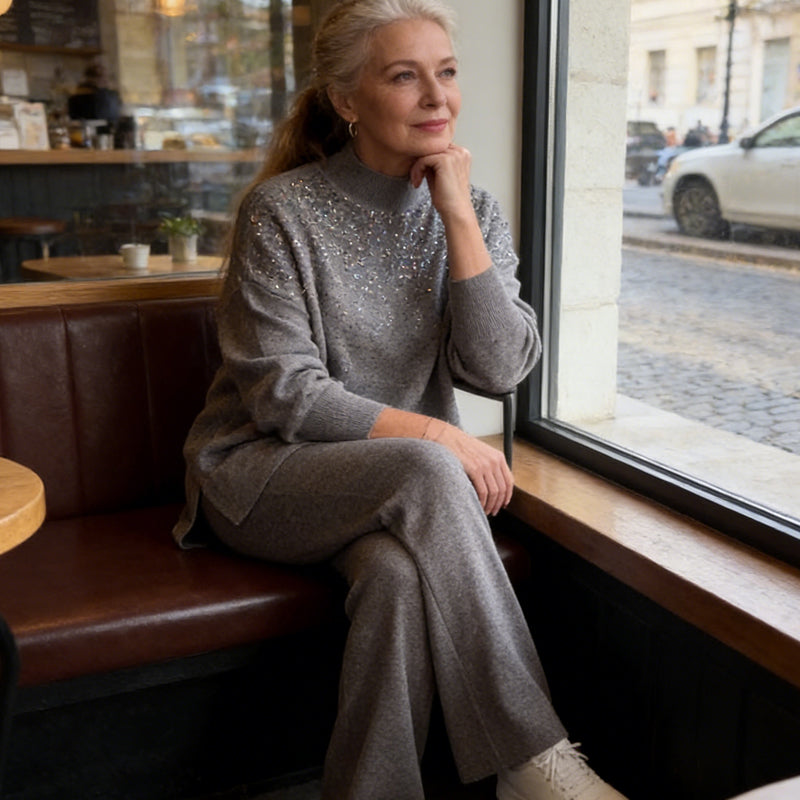 🔥New arrivals offer-Rhinestone Embellished Knit Sweater & Pants Set