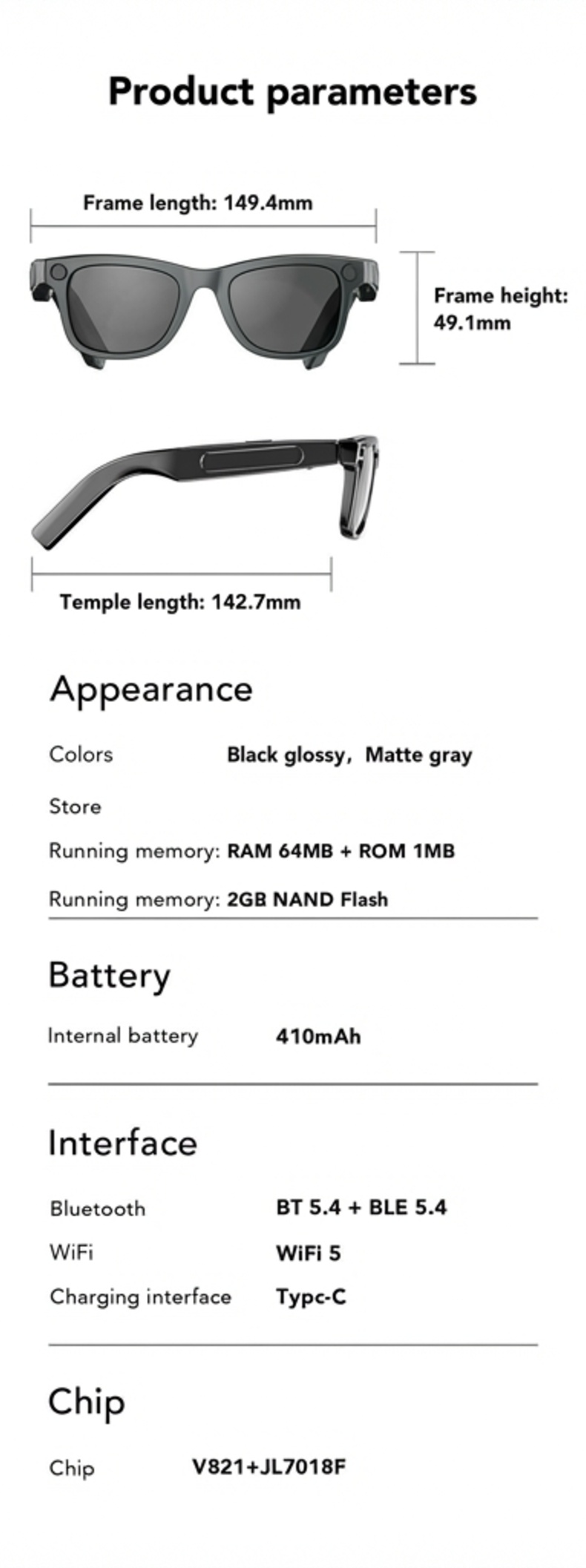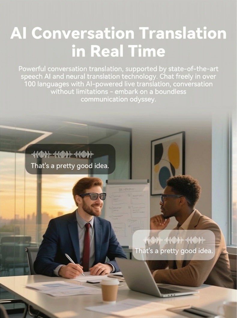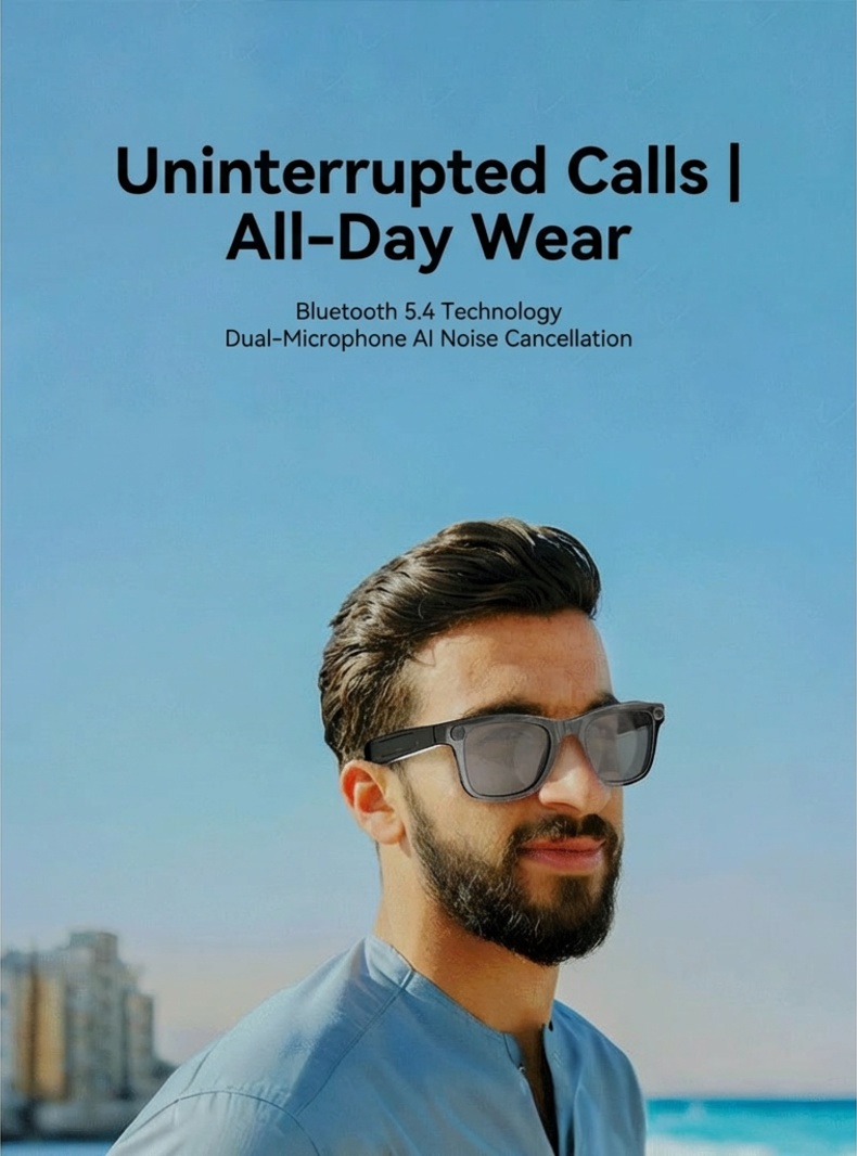 AI smart glasses with ChatGPT, 8 MP camera and HD 1200P 4K video recording, real-time translation in over 160 languages, Bluetooth 5.4, HiFi audio and music control, smart sunglasses with video recording for on the go