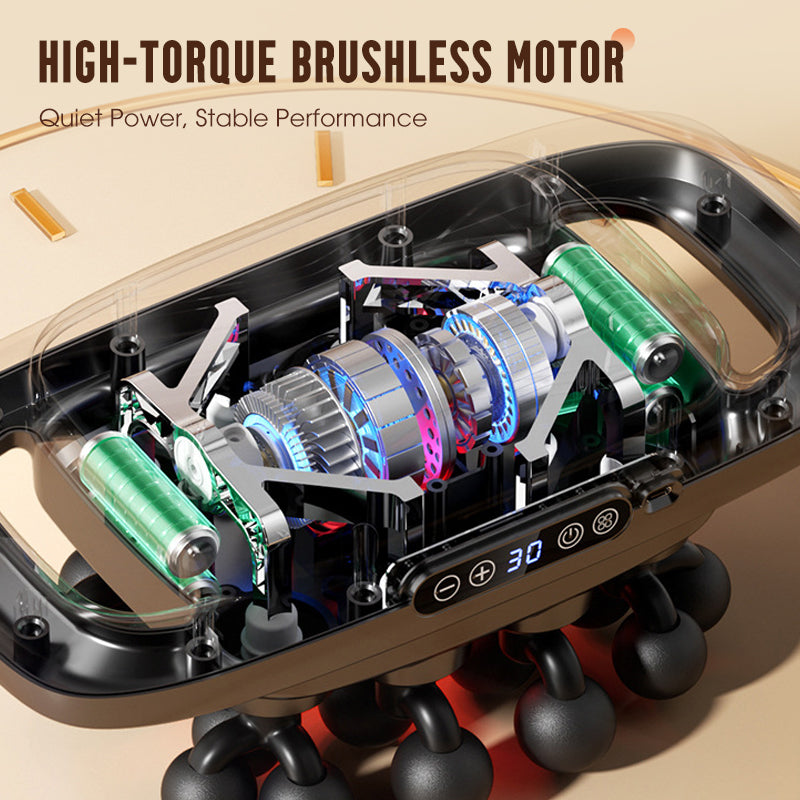 HIGH-TORQUE BRUSHLESS MOTOR - Engineered with an 8-axis drive system, it provides consistent and powerful strikes. Integrated noise and shock reduction technology ensures a quiet yet potent therapeutic experience without disturbance or performance loss under load.