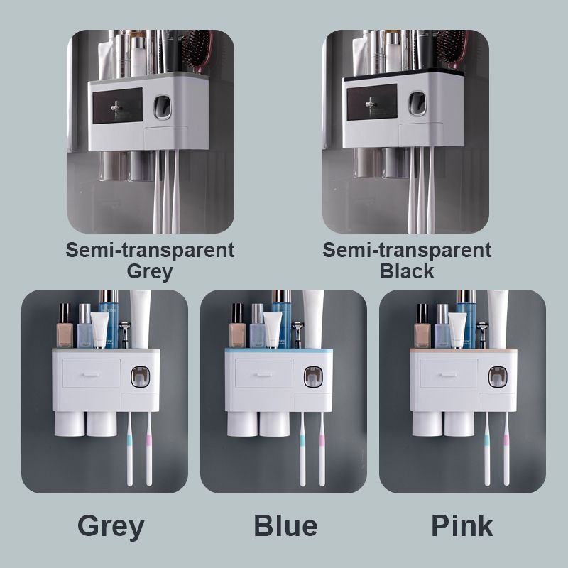 This multi-function toothbrush holder comes with an automatic toothpaste dispenser, making it easy to squeeze the toothpaste without waste. The 2/3/4 magnetic mouthwash cups are designed with an upside-down drain, dust-proof, and waterproof. You can hang 6 toothbrushes simultaneously, which is suitable for the whole family.