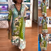 💚V-Neck Floral Print Dress With Side Slit And 3/4 Sleeves
