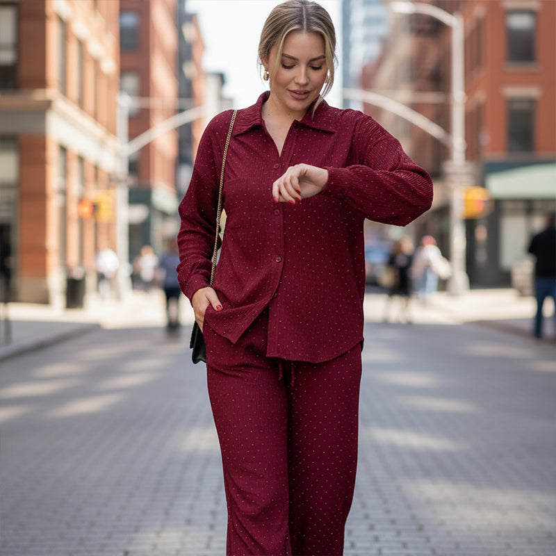 š„Limited-time offer-Women's Sparkling Pleated Two-Piece Lounge Set