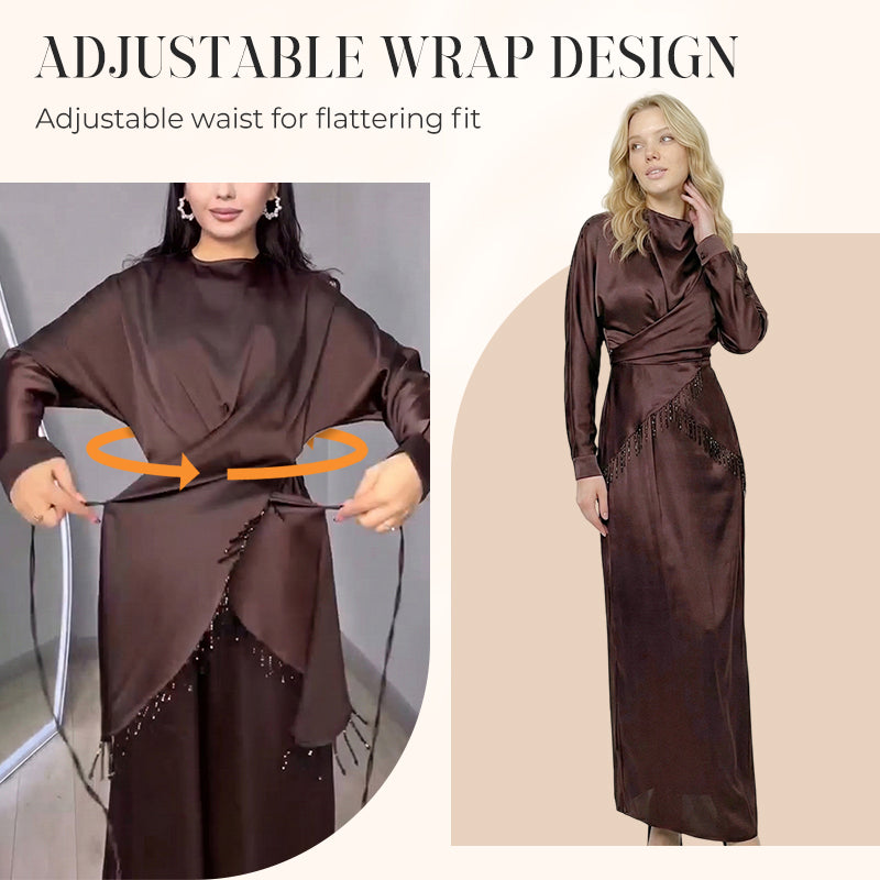 LUMINOUS GLOSSY FINISH - Crafted from a blended fabric with a subtle sheen, this dress set drapes beautifully and catches the light, providing a luxurious feel and a polished, sophisticated appearance suitable for various occasions.