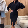 Women's Casual Half Zip Tops & Slit Skirt 2-Piece Set