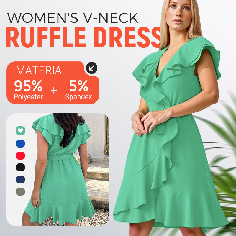 Women's Elegant Waist Tie V-Neck Ruffle Dress