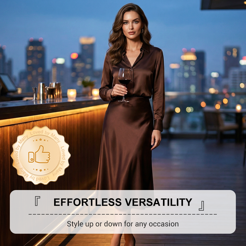 LUSTROUS SATIN FABRIC - Drapes beautifully against the body, offering a subtle sheen that catches the light. This creates a sophisticated and luxurious look perfect for any occasion, from day to night.