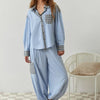 FUNCTIONAL POCKETS: Both the shirt and pants feature functional pockets, offering convenient storage for small essentials. Keep your phone, snacks, or other items close at hand, making this pajama set as practical as it is stylish.